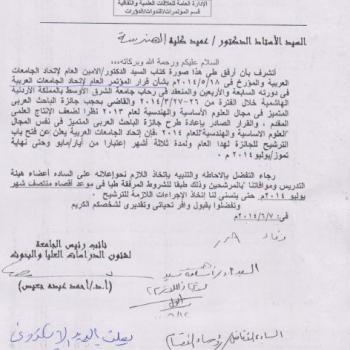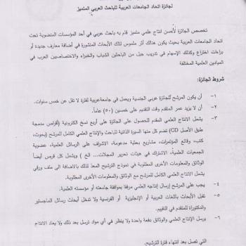 The Association of Arab Universities relaunched the prize for basic sciences and engineering for three months from May till the end of July 2014. This prize was formely withheld over lack of…