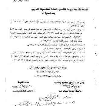 The faculty asks the faculty members to inform their students with the terms and conditions to attend the exams and to avoid any problems that might happen due to their abscence.