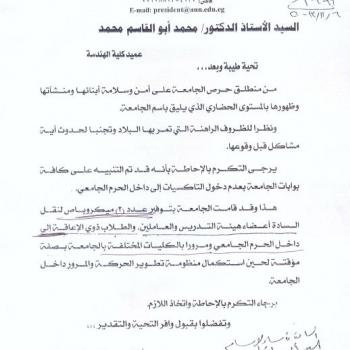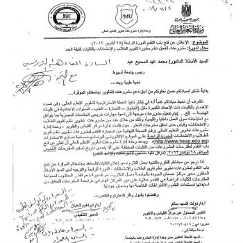 The president of assiut university sent a letter to the dean of the faculty informing him that taxis will not be allowed to enter the university to ensure safety and security and also to make the…