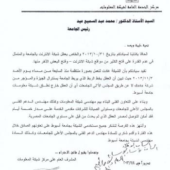 The internet service in assiut university is back to work from sunday 3-11-2013 (7:00 p.m) after fixing the connected wires that links the university to the central of giza  and which is hired…