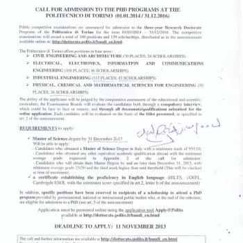 The Politecnico di Torino university is offering scholarships in its 29th cycle.Public competitive examinations are announced for admission to the three-year doctoral programs  of  the…