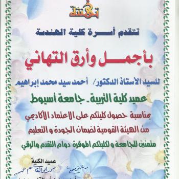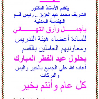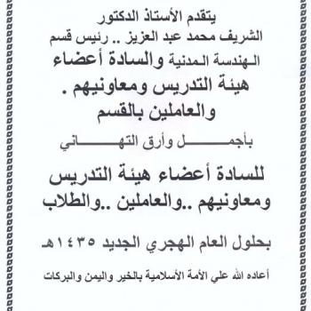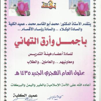 The dean of the faculty Professor Muhammad Abo El-Kassem is congratulating all the faculty staff, employees and students for the New Hijri Year wishing them all the best.