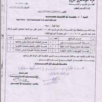 The training and technicien preparation sector in assiut refining oil company sent a letter to the dean of the faculty to inform him about its intension to train 11 technicien from the faculty during…