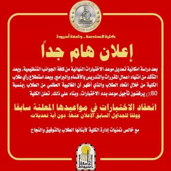 After studying the possibility of adjusting the final exam dates from all organizational aspects, ensuring that coursework and teaching in departments and programs have been completed, and…