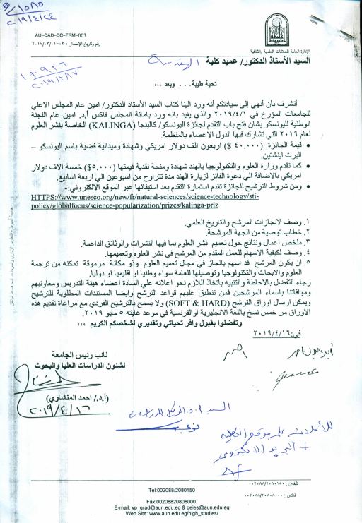 Prof. Dr. Khaled Salah, Dean of the Faculty, congratulates Prof. Eng. Dr. Omar Salah El-Din, Assistant Professor in the Department of Mechatronics Engineering at the Faculty, on the occasion of the issuance of the decision of His Excellency Prof. Dr. Ahme