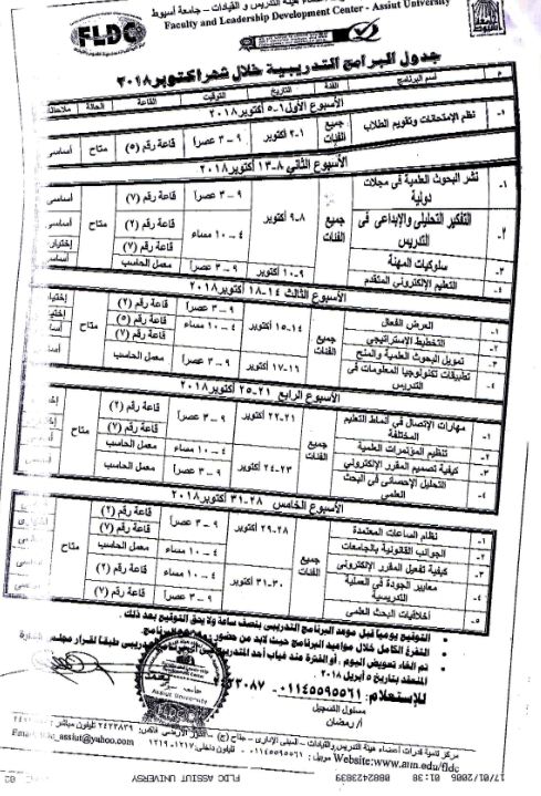 Schedule of training programs during the month of October 2018 for the capacity development program for faculty members 27 September 2018 Schedule of training programs during the month of October 2018 for the capacity development program for faculty members