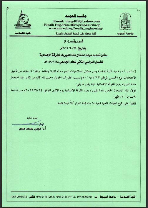 On the scheduling of the physics exam for the second semester Preparatory division 13 June 2019 On the scheduling of the physics exam for the second semester Preparatory division