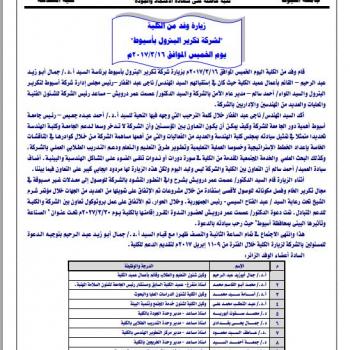 A report about the Faculty visit to Assiut Petroleum Pipelines Company under the supervision of the acting dean professor Gamal Abou Zeid Abd El-Rahim.