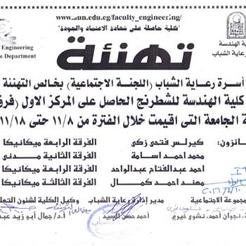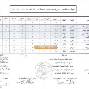 The Youth Affairs of Assiut University has announced the results of students competition that was held from 14/3/2016 to 17/3/2016