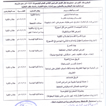 The Youth Affairs has published the faculty of engineering projects that were achieved in the second semester in cooperation with Student's Union.
