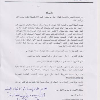 The Egyptian Society of Language Engineering published itsfirst edition of scientific magazine for language engineeing. There is also an electronic version of the magazine on the Egyptian…