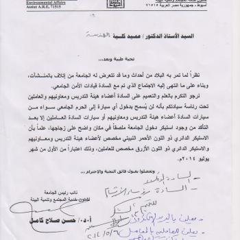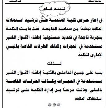 The faculty of engineering took some procedures to reduce the consumption of energy by asking the employees to turn off all the unused lights in the administration building.