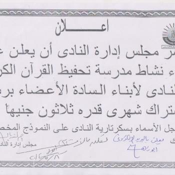 The faculty staff club will start its Quran school for the children of the faculty staff. For registeration, please go to the secretary of the club. Registeration fees is 30 L.E.