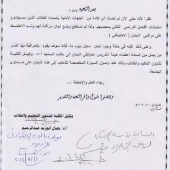 The faculty of engineering decided not to set any exam Invigilation for imprisoned students as the the ministry of interior affairs did not send the list of their names.