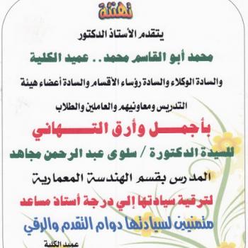 The dean of the faculty and the whole staff would like to congratulate Dr. Salwa Abd El-Rahman, Architectural Engineering Department, for being promoted as an assistant professor, wishing her all the…