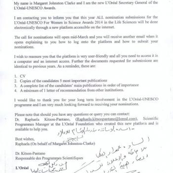 This year all nomination submissions for the L Oreal-UNESCO For Women in Science Awards 2014 in the Life Sciences will be done electronically through a new platform accessible on the internet.The…