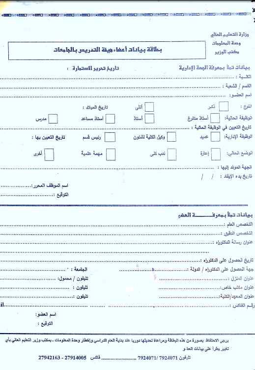 Updating the data of the Faculty Members 9 February 2014 The information unit of ministry of higher education sent a letter to the dean of the faculty about updating the data of the faculty members.