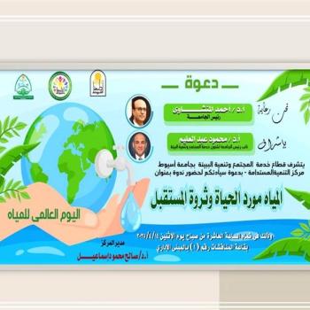 في إطار الاحتفال باليوم العالمي للمياه ... جامعة أسيوط تنظم ندوة توعوية بعنوان"المياه مورد الحياة وثروة المستقبل"في 14 أبريل المقبل