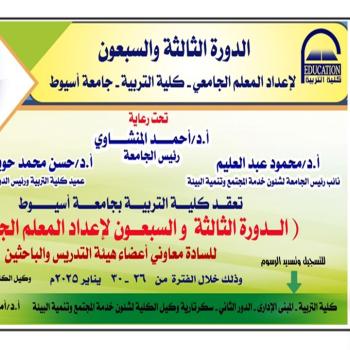 جامعة أسيوط تُعلن عن دورة "إعداد المعلم الجامعي" لمعاوني أعضاء هيئة التدريس والباحثين فى نسختها الثالثة والسبعون
