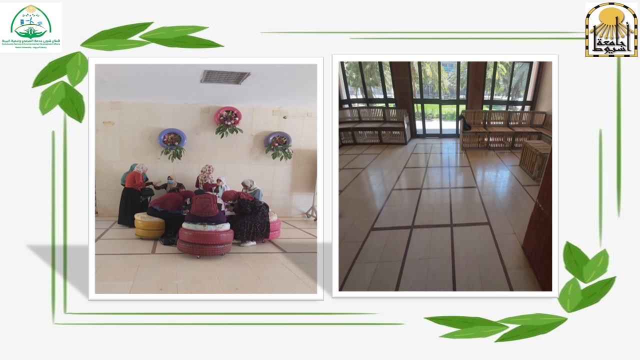 كما قامت وحدة الصيانة بالمدن الجامعية، تحت إشراف الدكتور أحمد عبد المولى نائب رئيس الجامعة لشئون التعليم والطلاب، والأستاذ محمود عنتر مدير عام إدارة المدن الجامعية؛ بإعادة تدوير الأثاث، وتحويله إلى قطع أثاث جديدة وعصرية، وطلاء إطارات السيارات القديمة، وتنجيدها، لتكون مقاعد مريحة للطالبات، وتم تركيب عجلات لسهولة تحريكها، إلى جانب استخدام الإطارات في عمل طاولات، وأشغال فنية لتزيين الحوائط.