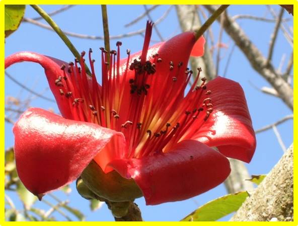 Deciduous tree, up to 35 m high. Leaves palmate, with 5-7 entire-margined leaflets. Petals 5-8 cm long, stellate-tomentose on both surfaces. Filaments about 70, much longer than the staminal tube. capsule oblong, woody, 10-12 cm long.