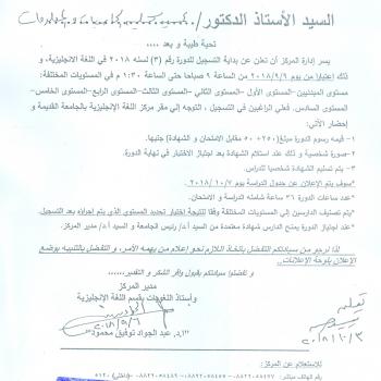 The beginning of the registration of English language courses at the Center for Teaching English as of 9/9-2018