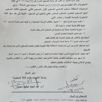لطلاب المستوى الأول والثاني عام + خاص (حقوق انسان) سيعقد أمتحان أعمال السنة مادة حقوق الانسان للأستاذ الدكتور / بدر عبدالسلام وذلك يوم السبت الموافق 14 /12 /2019 من الساعة 11 الي 12 بمدرجات 1 , 2 , 3…