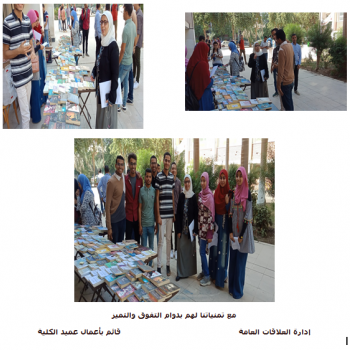 قامت السيدة الأستاذ الدكتور / تيسير حسن عبد الحميد قائم بأعمال عميد الكلية بزيارة وتفقد معرض للكتاب والمقام علي أرض كلية الحاسبات والمعلومات بمجهودات طلاب الكلية برعاية اسرة إنسان للخير .
