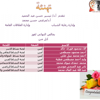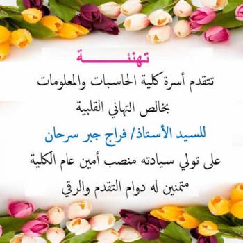 لطلاب الفرقة الثالثة (عام) مادةالبرمجة المرئية سيتم تبديل سكشن 2 قسم علوم الحاسب يوم الخميس 2 :4 معمل 1هـ بدلا من يوم الأربعاء 12 :2 . سيتم تبديل سكشن 1،2،3 قسم نظم المعلومات يوم الأربعاء 12 :2…