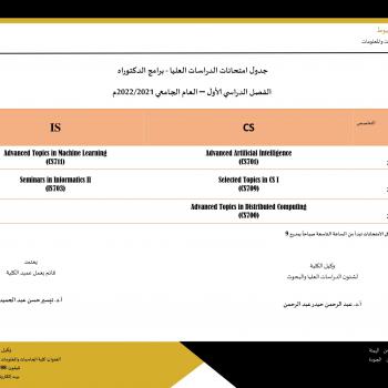 جدول امتحانات الدراسات العليا - برامج الماجستير