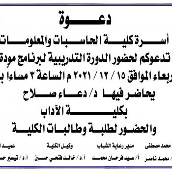 اسرة كلية الحاسبات والمعلومات ورعاية الشباب بالكلية يتقدمون بخالص التهاني القلبية