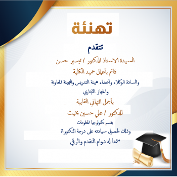 تتقدم السيدة الاستاذ الدكتور /تيسير حسن قائم بأعمال عميد الكلية