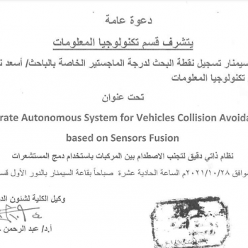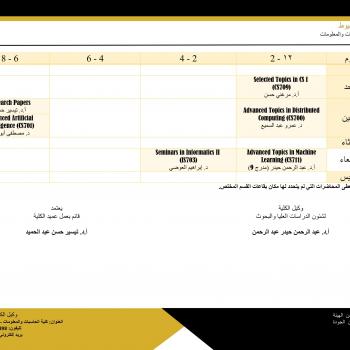 يتشرف قسم نظم المعلومات بدعوة لحضور سيمنار الصلاحية لرسالة الدكتوراه الخاصة بالباحثة / سها عبدالمؤمن محمد الذهني