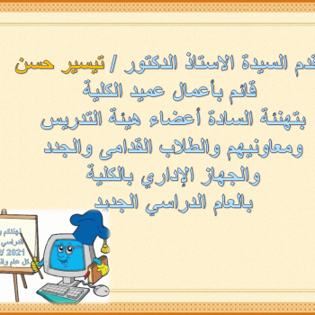 بتهنئة السادة أعضاء هيئة التدريس ومعاونيهم والطلاب القدامى والجدد