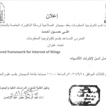 سوف يتم مناقشة مشاريع التخرج الفصل الدراسي الصيفي عقب الإمتحانات وذلك يومي الأحد والأثنين…