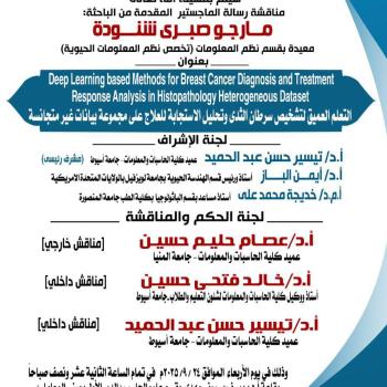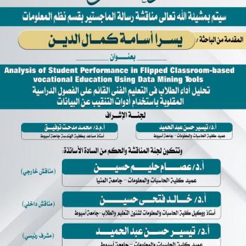 دعوة انعقاد السيمنار النهائي لرسالة الماجستير الخاصه بالباحثه /منال محمود أحمد المعيده بقسم نظم المعلومات