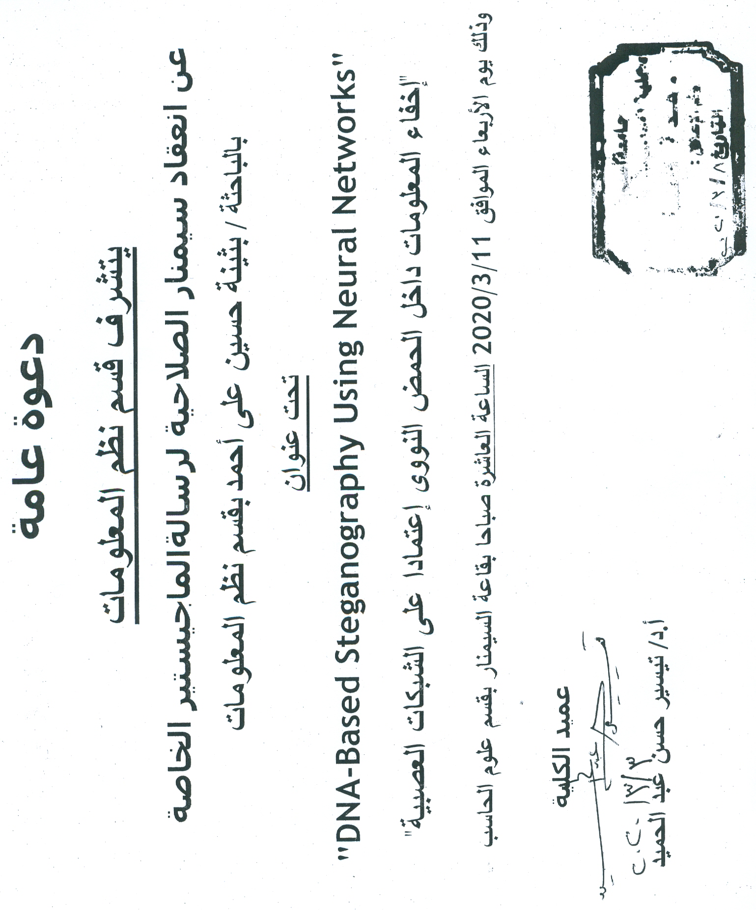 سيمنار الصلاحية لرسالة الماجستير الخاصة بالباحثة / بثينة حسين على 8 مارس 2020 سيمنار الصلاحية لرسالة الماجستير الخاصة بالباحثة / بثينة حسين على