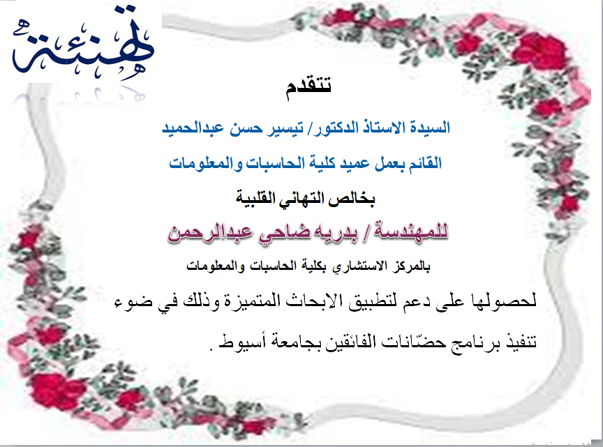 تتقدم السيدة الاستاذ الدكتور/تيسير حسن قائم باعمال عميد الكلية