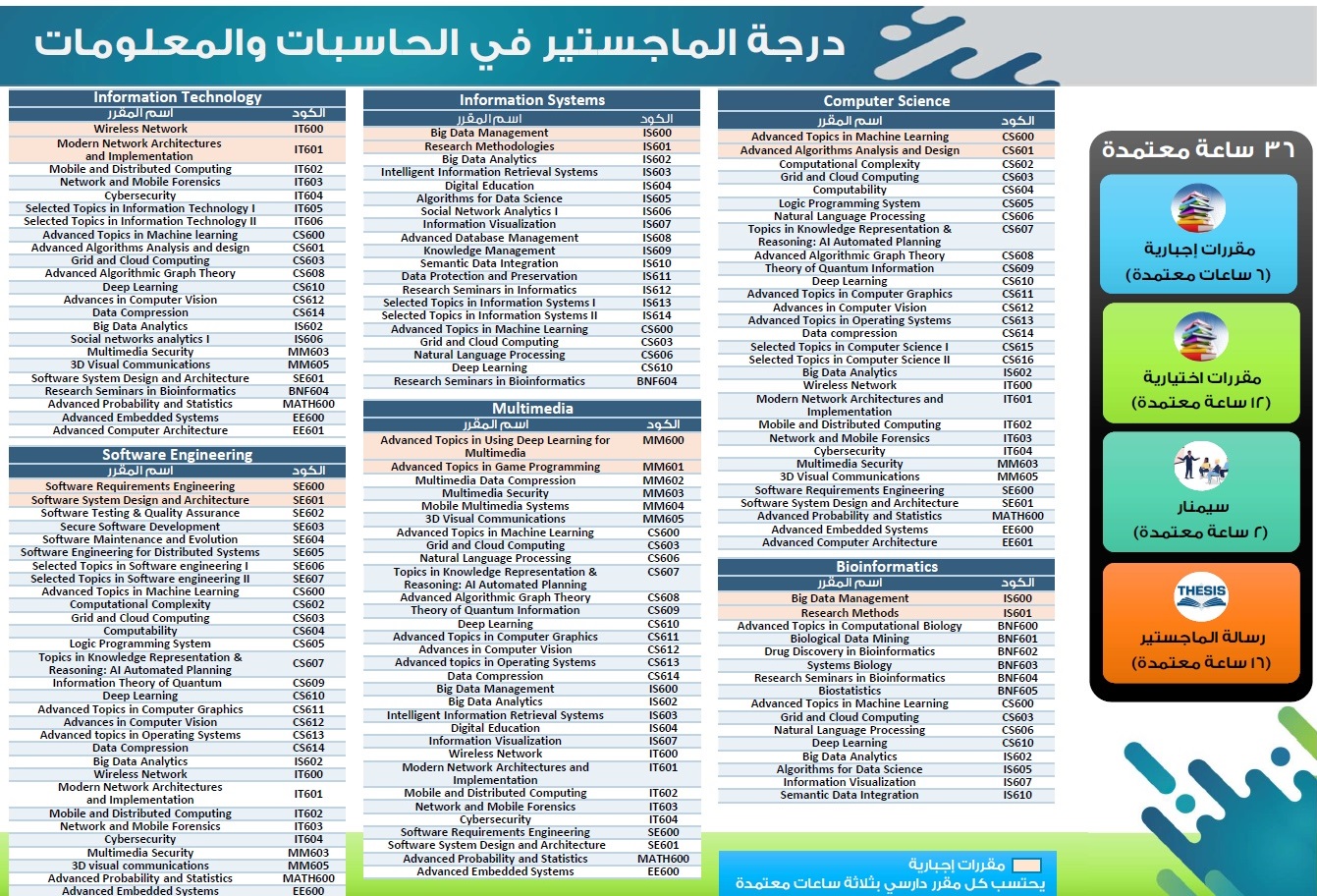 يختار الطالب بالتنسيق مع القسم المختص واحداً من المقررات التالية: