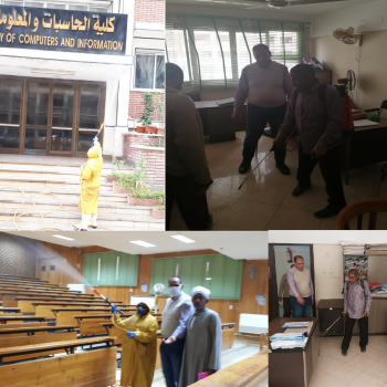 تواصل كلية الحاسبات والمعلومات أعمال تطهير وتعقيم لكافة ارجاء الكلية من مدرجات ومعامل ومكاتب أعضاء هيئة التدريس والموظفين والطرقات والحدائق ودورات…