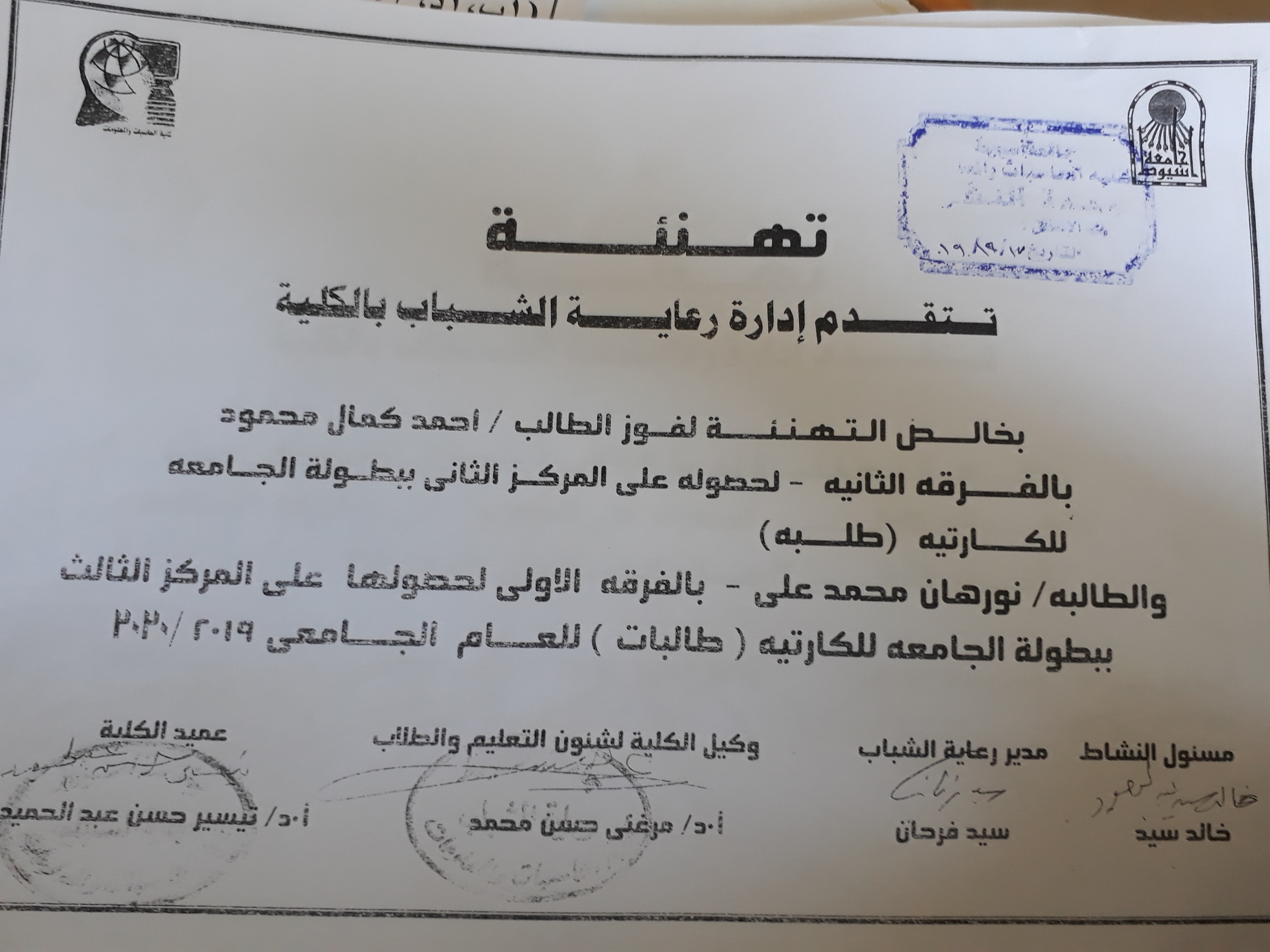 تهنئة للطالب / احمد كمال محمود والطالبة / نورهان محمد 17 ديسمبر 2019 تهنئة للطالب / احمد كمال محمود والطالبة / نورهان محمد