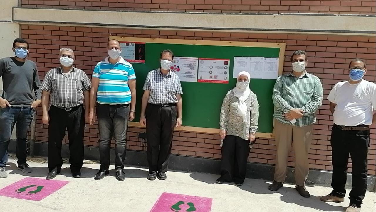 بجهد دؤب شرفت الاستاذة الدكتورة تيسير حسن قائم بأعمال عميد الكلية على إنهاء كافة الإجراءات الإحترازية لإستقبال إمتحانات الفصل الدراسي الثاني الفرقة الرابعة وبحضور الاستاذ الدكتور خالد فتحي وكيل الكلية لشئون التعليم والطلاب والدكتور إسلام تاج الدينبعد ان شرفت سيادتها على تطهير معامل الكلية والتي سينعقد بها الامتحانات قامت سيادتها بالإشراف على لصق النماذج الاسترشادية للطلاب وملصقات توضيحية للطلاب بأماكن وجود الكحول وايضًا تعليمات حول كيفية التخلص من الكمامات والقفازات والتطهير بعد الخروج من اللجان ونشر الجداول الدراسية للطلاب وأماكن الجلوس بأكثر من وسيلة وضوابط حسن سير عملية الامتحانات الخاصه بالطلاب على أبواب اللجان وتطبيق مسافات التباعد من جميع الاتجاهات
