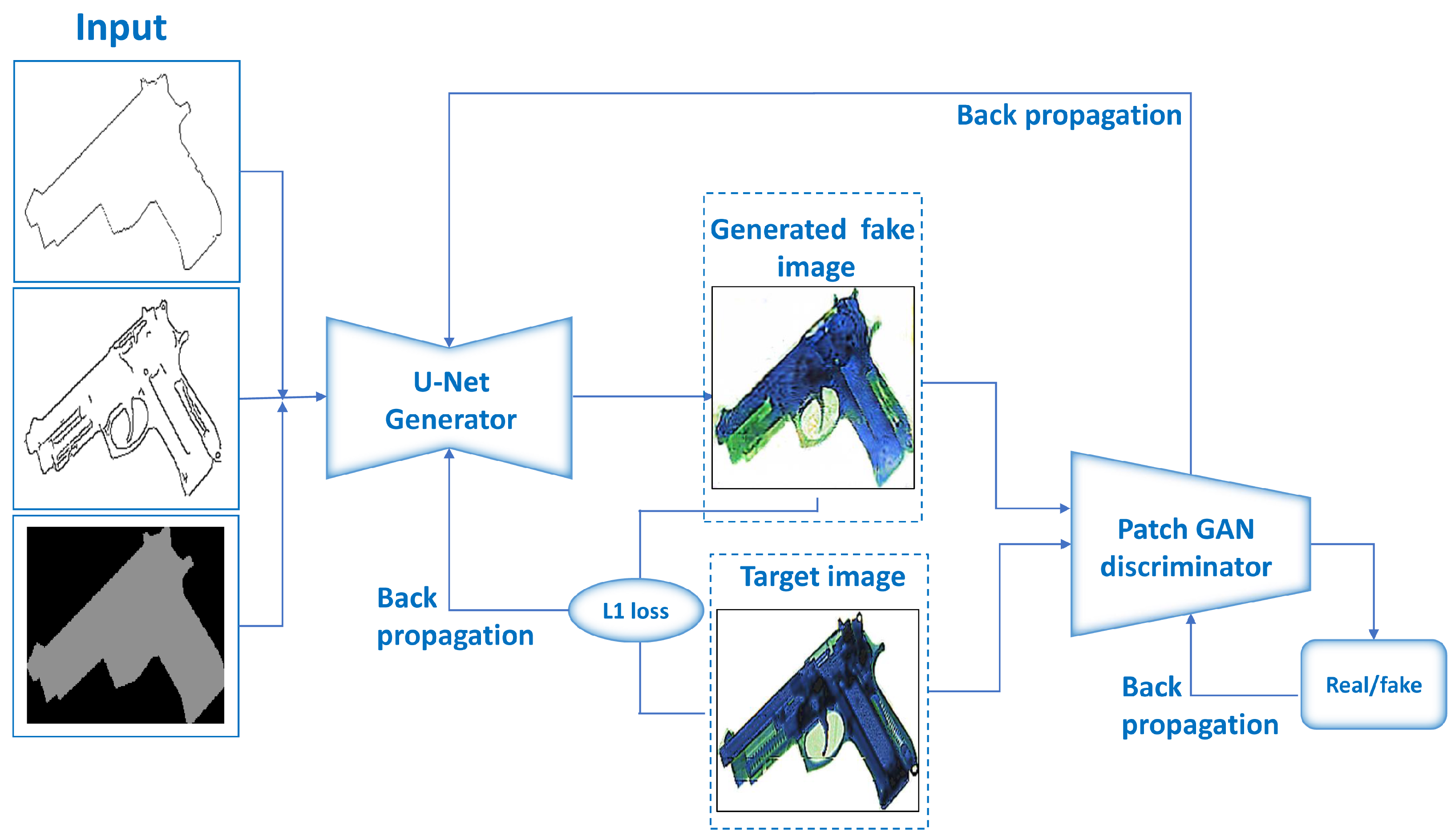 This study addresses the field of X-ray security screening and focuses on synthesising realistic X-ray images using advanced generative models. Insufficient training data in this area pose a major challenge, which we address through innovative data augmentation techniques. We utilise the power of generative adversarial networks (GANs) and conditional GANs (cGANs), in particular the Pix2Pix and Pix2PixHD models, to investigate the generation of X-ray images from various inputs such as masks and edges. Our experiments conducted on a Korean dataset containing dangerous objects relevant to security screening show the effectiveness of these models in improving the quality and realism of image synthesis. Quantitative evaluations based on metrics such as PSNR, SSIM, LPIPS, FID, and FSIM, with scores of 19.93, 0.71, 0.12, 29.36, and 0.54, respectively, show the superiority of our strategy, especially when integrated with hybrid inputs containing both edges and masks. Overall, our results highlight the potential of advanced generative models to overcome the challenges of data scarcity in X-ray security screening and pave the way for more efficient and accurate inspection systems.