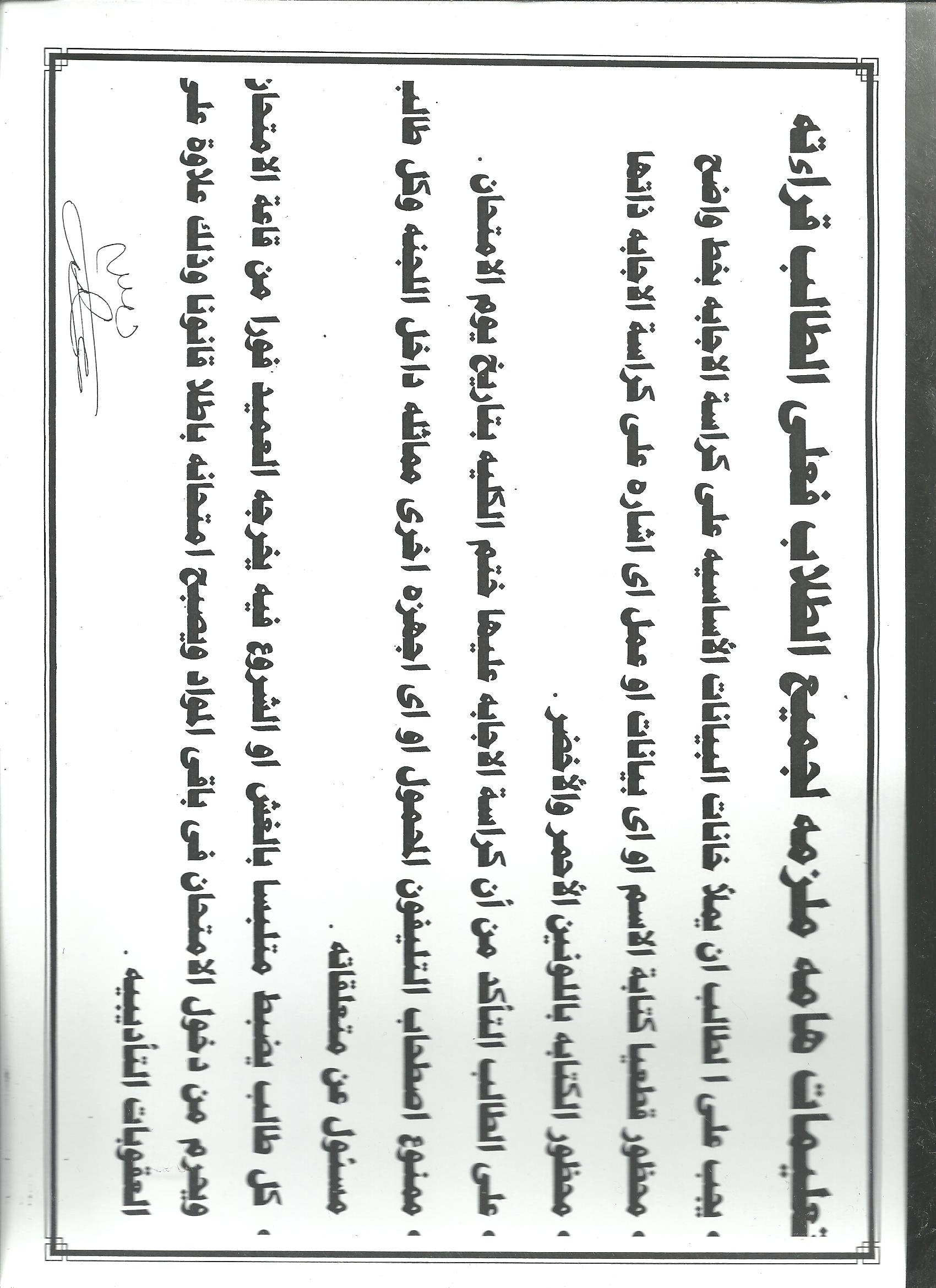 اعلان هام لطلاب الدراسات العليا بالكلية