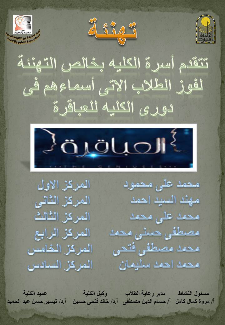 تتقدم أسرة كلية الحاسبات والمعلومات بخالص التهاني