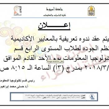 The Graduation Follow-up Unit announces the holding of a a symposium to raise awareness of the needs of the labor market. The lecture will be delivered by Dr. Hossam Ragab on Sunday, 2018/…