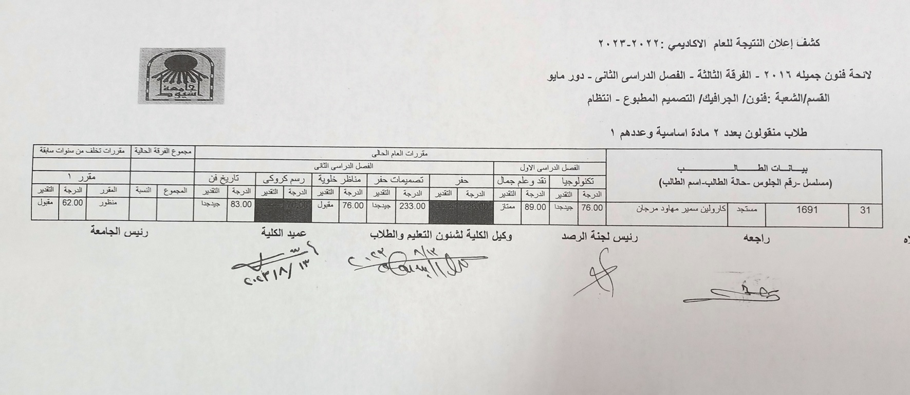 Announcement of the result of the third year, graphic department, printed design division 13 August 2023