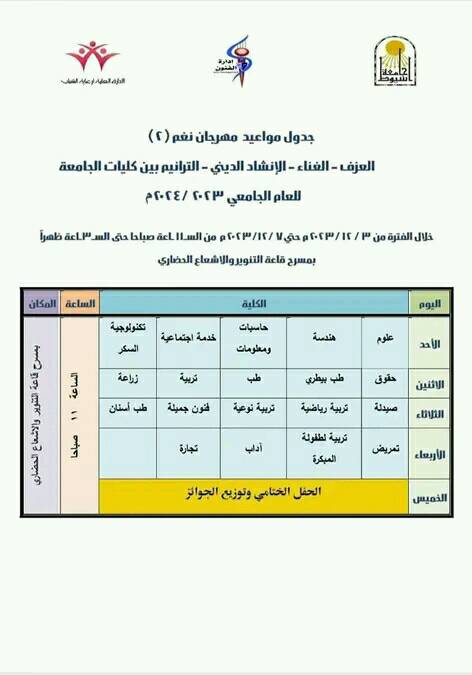 إدارة الفنون .... جدول مواعيد مهرجان نغم ٢