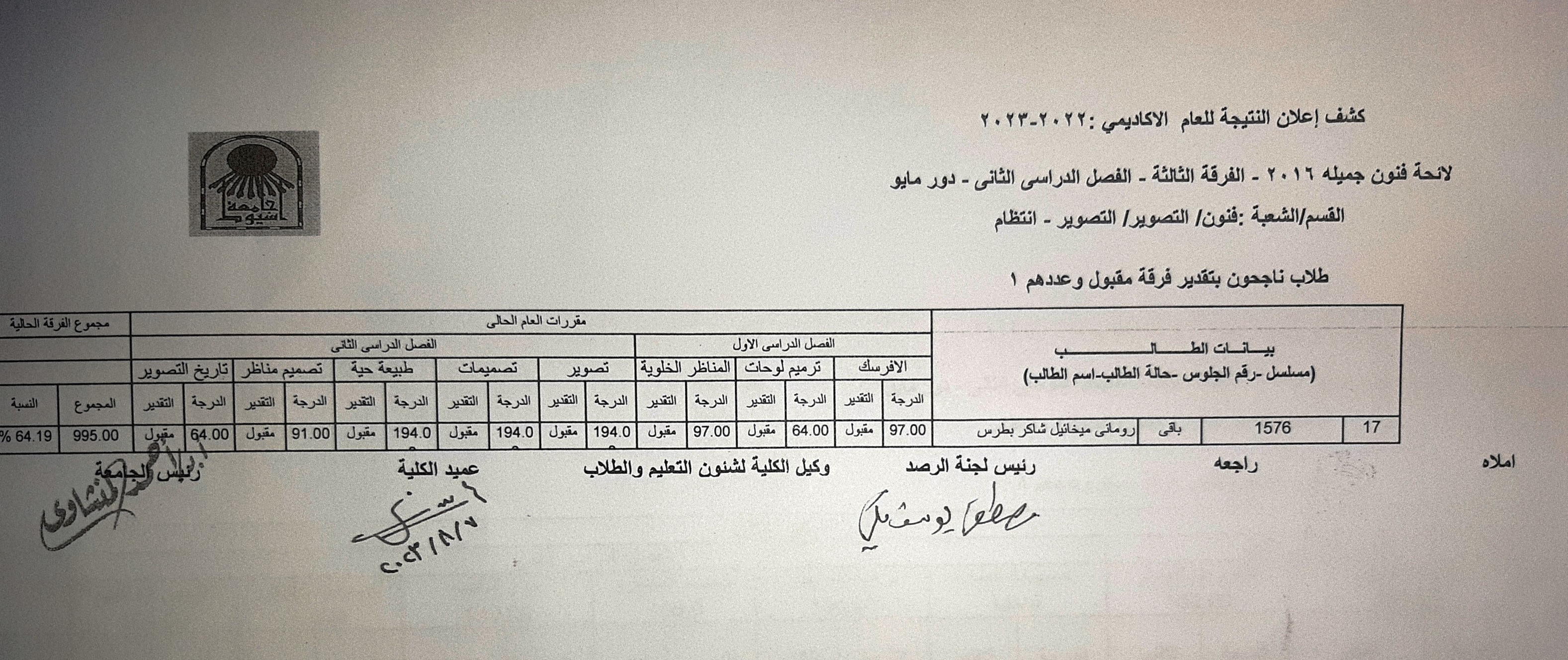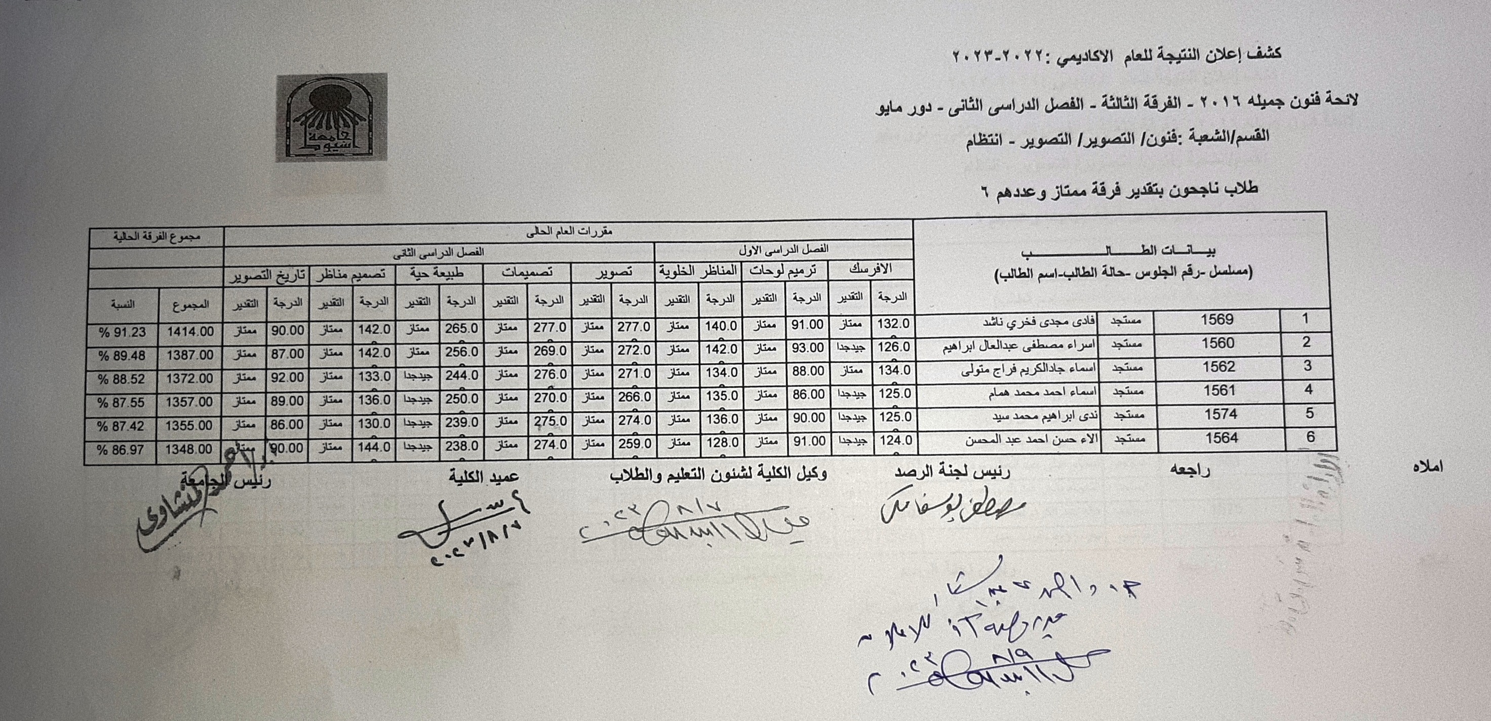 اعلنت كلية الفنون الجميلة نتيجة الفرقة الثالثة بقسم التصوير.. شعبة التصوير فور اعتمادها بعد اعمال المراجعة وينتظر طلاب الكلية نتائج الفصل الدراسى ونهاية العام ويتابع الطلاب بأهتمام ..ومن ثم يتم الاعلان عن النتائج تباعا بعد انتهاء اعمال المراجعة والاعتمادات ..