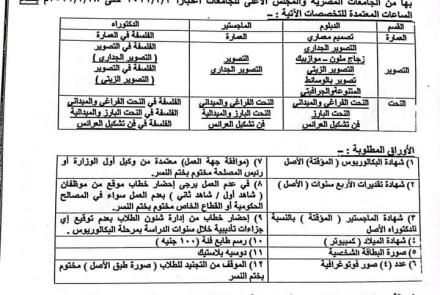 تعلن كلية الفنون الجميلة جامعة أسيوط علي فتح باب القيد لمرحلة الدراسات العليا (دبلوم- ماجستير - دكتوراة) بالاقسام العلمية بالكلية (عمارة - تصوير - نحت) للعام الجامعي 2021/2022